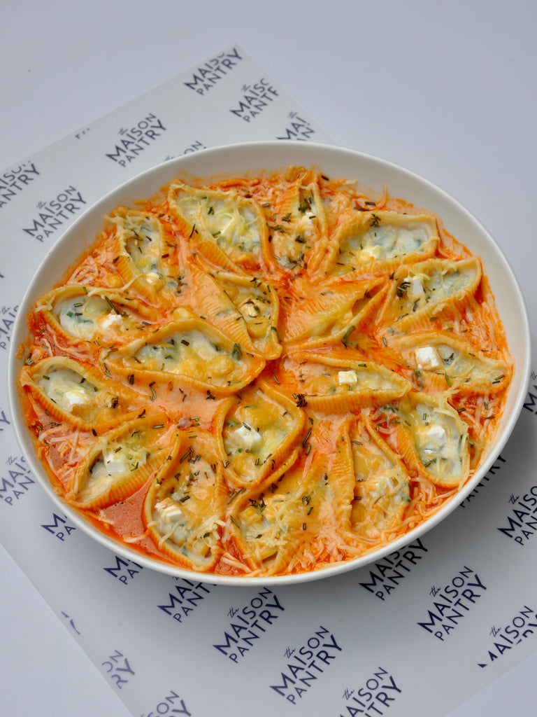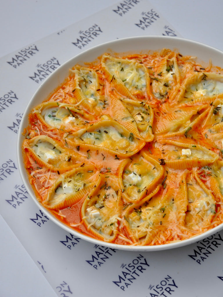 Treat yourself to Saloni's Kitchen's renowned Pasta Shells with Feta and Edam - a culinary masterpiece that continues to charm food enthusiasts. The harmonious combination of creamy feta and Edam cheese elevates this pasta dish to new heights of flavor. For a delightful and satisfying meal, complement it with garlic bread, making it a standout choice for any occasion.